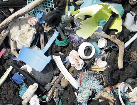 As tartarugas confundem os sacos plásticos com águas-vivas e os engolem, o que as mata. Peixes grandes e pequenos engolem os pequenos flocos de plástico. As aves marinhas comem esses peixes e o plástico contido nos peixes mata as aves marinhas.